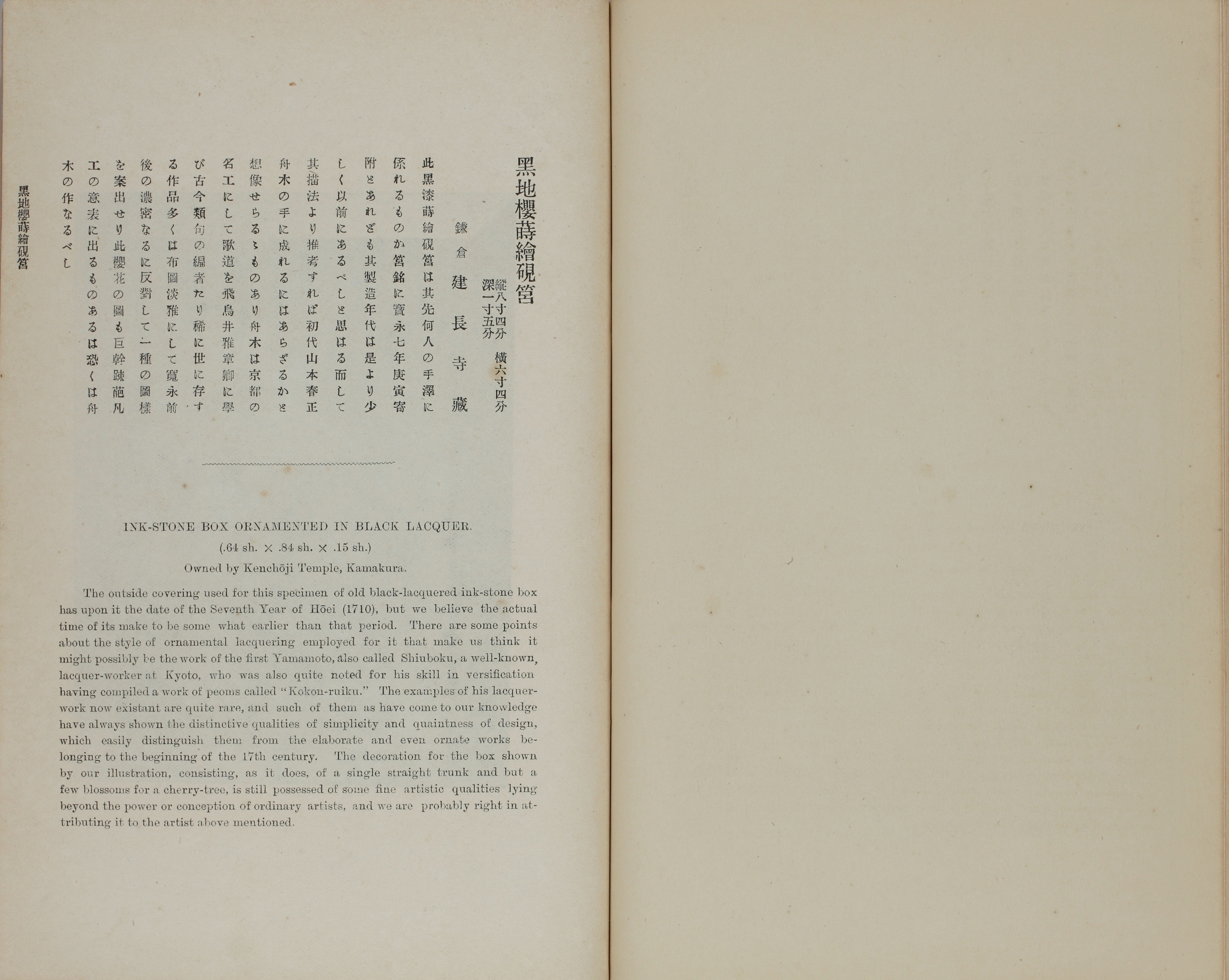 黒地桜蒔絵硯筥(INK-STONW BOX ORNAMENTED IN BLACK LACQUER) |