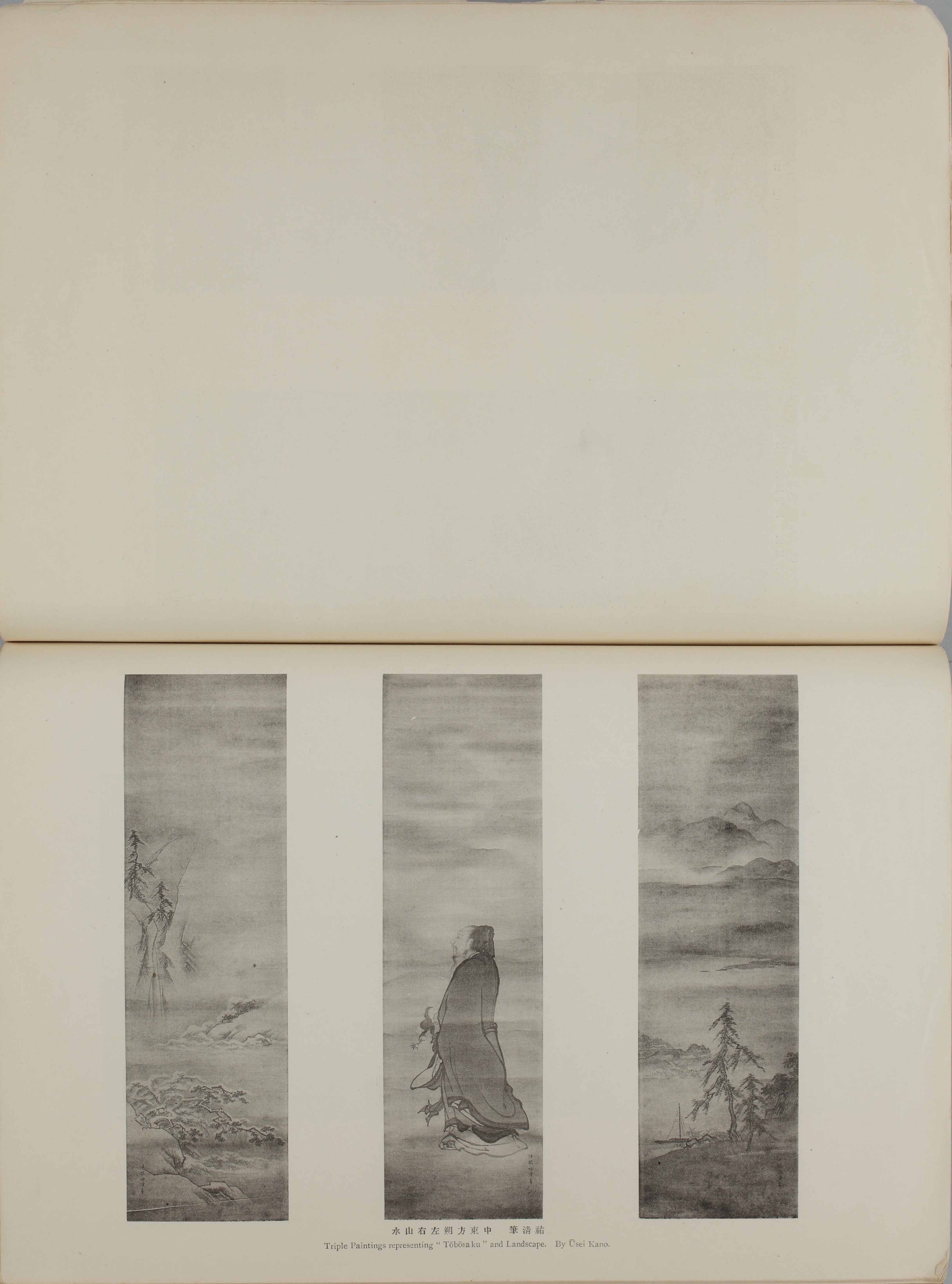 中東方朔左右山水(TRIPLE PAINTINGS REPRESENTING “TŌBŌSAKU” AND LANDSCAPE) |